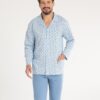 Piżama męska Regina bawełniana długi rękaw Rozpinana niebieska:
