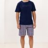 Piżama męska Regina bawełniana kratka krótkie spodenki granat: