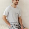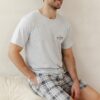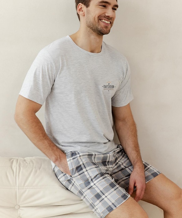 Piżama męska Taro Ralph 3392 krótkie spodnie krata szara: