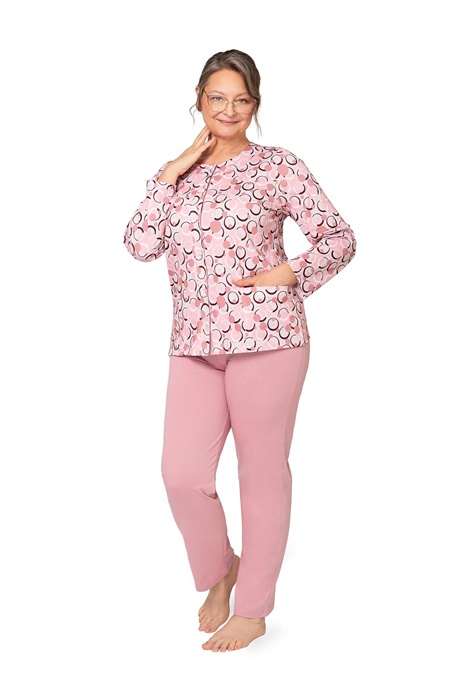 Piżama rozpinana długa Maria III 202 róż koła: