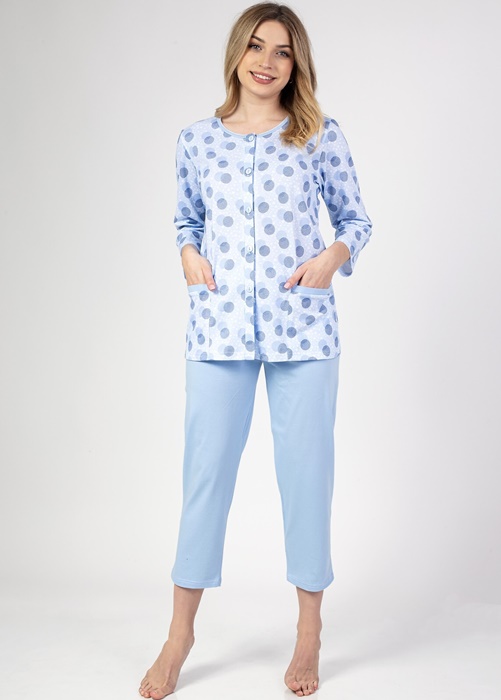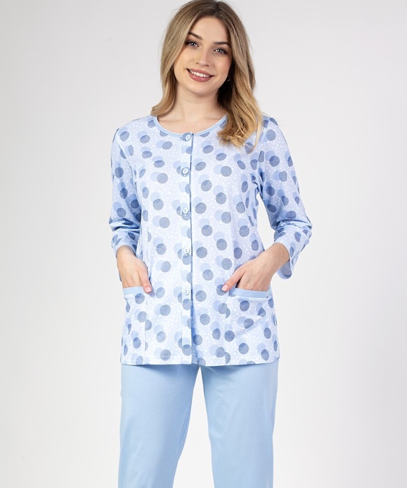 Piżama rozpinana Regina 670 niebieska w grochy: