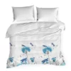 Piękna biała Pościel Eurofirany ze 100% bawełny – pościel biała w niebieskie dmuchawce i ważki: