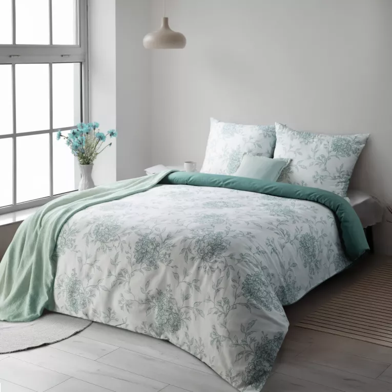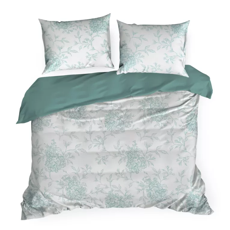 Pościel satynowa bawełniana Biało miętowa w kwiaty: