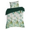Pościel Eurofirany z mikrofibry – pościel biało zielona w liście egzotyczne: