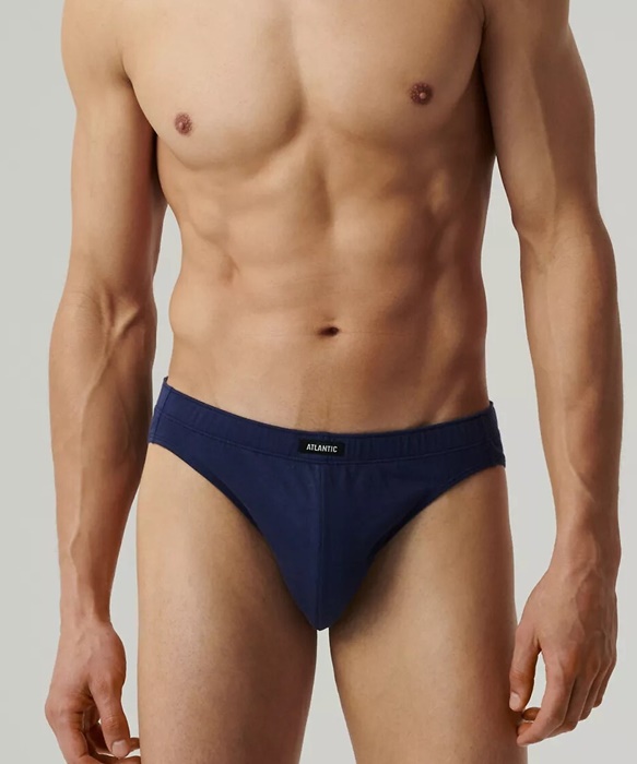Slipy męskie Atlantic – zestaw 5 sztuk 100% bawełnianych majtek męskich. W pasie nieuciskająca miękka gumka z naszytym logo Atlantic. Slipy męskie uszyte są z wysokiej jakości, miękkiej bawełny. Majtki męskie pakowane są w pudełko po 5 sztuk.