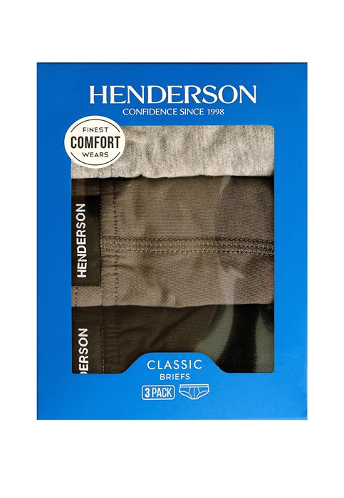 Slipy męskie Henderson – zestaw 3 sztuk 100% bawełnianych majtek męskich. W pasie wygodna gumka, ukryta. Slipy męskie uszyte są z wysokiej jakości, miękkiej bawełny. Majtki męskie pakowane są po 3 sztuki.