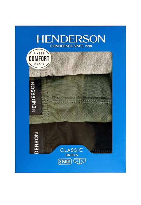 Slipy męskie Henderson – zestaw 3 sztuk 100% bawełnianych majtek męskich. W pasie wygodna gumka, ukryta. Slipy męskie uszyte są z wysokiej jakości, miękkiej bawełny. Majtki męskie pakowane są po 3 sztuki.