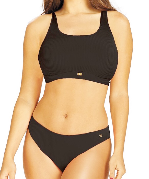 Kostium kąpielowy damski dwuczęściowy BEZ fiszbin. Wygodny i stylowy strój kąpielowy damski dwuczęściowy idealny i na basen i na plażę. Biustonosz bez fiszbin, w formie topu, rozpinany z tyłu. Miseczki są z cienką pianką usztywniającą. Materiał odporny w prążek. Ramiączka z regulacją. Regulacja obwodu biustonosza przy zapięciu. Figi o klasycznym kroju.