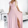 Sukienka długa do ziemi maxi elegancka Brokat jasny róż:
