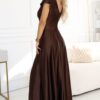 Sukienka długa do ziemi maxi elegancka Satynowa czekoladowa: