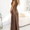 Sukienka długa do ziemi maxi elegancka Satynowa kawowa