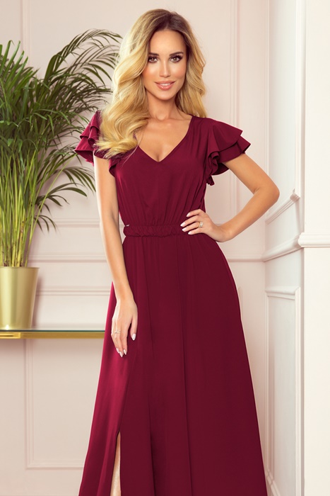 Sukienka długa Maxi Lidia rękaw falbanka bordowa: