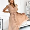 Sukienka krótka talia z paskiem plisowany dół beżowa: