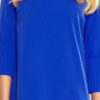Sukienka krótka z rękawkiem 3/4 i zdobnymi plisami chabrowa: