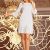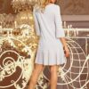 Sukienka krótka z rękawkiem 3/4 i zdobnymi plisami szara: