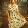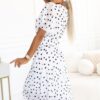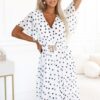 Sukienka luźne rękawki z paskiem w grochy biała: