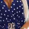 Zwiewna Sukienka do kolan luźne rękawki z paskiem w grochy granatowa: