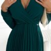 Sukienka plisowana do kolan z długim rękawkiem butelkowa zieleń: