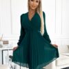 Sukienka plisowana do kolan z długim rękawkiem butelkowa zieleń: