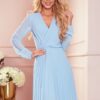 Sukienka plisowana do kolan z długim rękawkiem jasny błekitny: