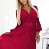 Sukienka plisowana elegancka długi rękaw Klara bordowa: