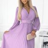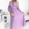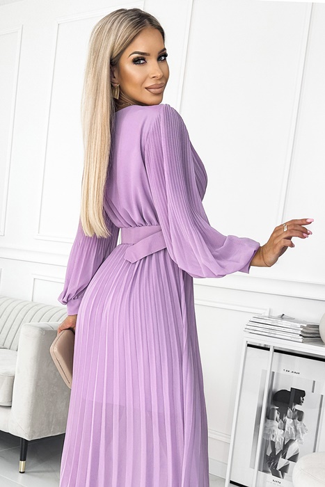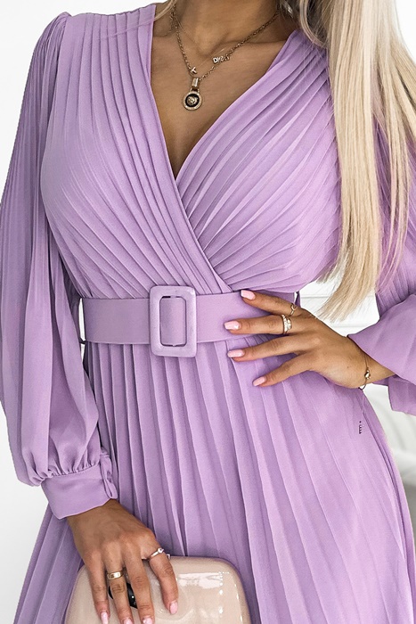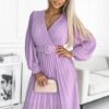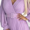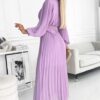 Sukienka plisowana elegancka długi rękaw Klara jasny wrzosowy: