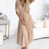 Sukienka plisowana krótkie rękawy z falbankami beżowa: