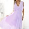 Sukienka plisowana krótkie rękawy z falbankami wrzosowa: