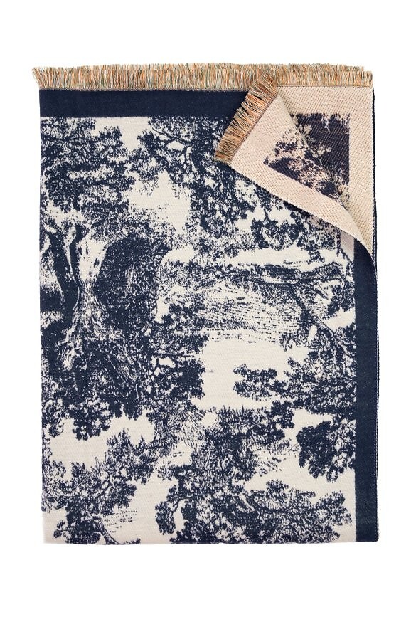 Szal damski Art of Polo długi botaniczny wzór granatowy