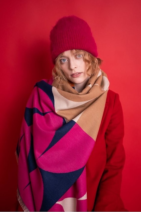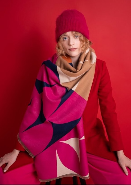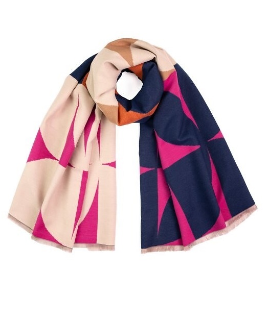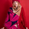Elegancki szal damski długi w geometryczne wzory fuksjowy.