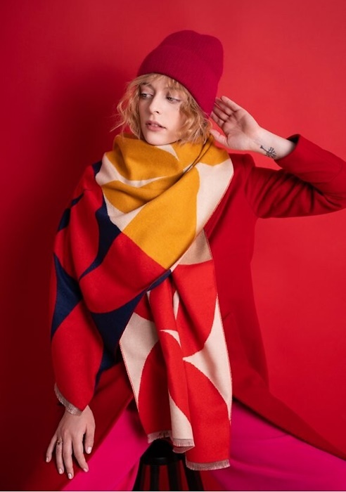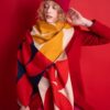 Elegancki, kolorowy długi szal damski w geometryczne wzory. Szal długości 2m – idealny do opatulenia.