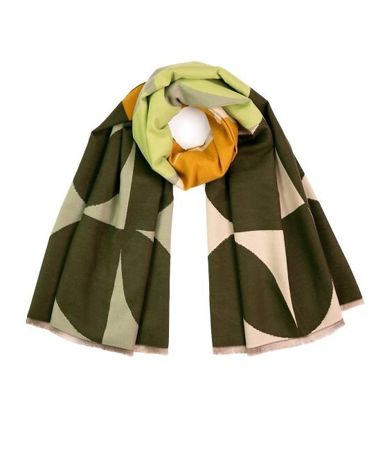 Elegancki szal damski długi w geometryczne wzory zielony.