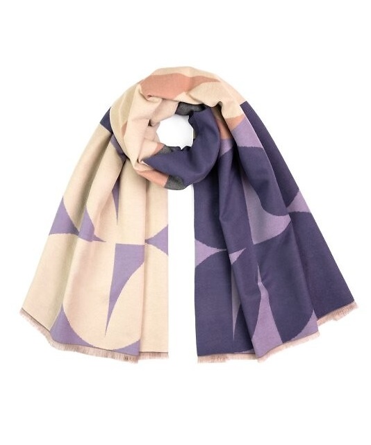 Elegancki szal damski długi w geometryczne wzory lawendowy.