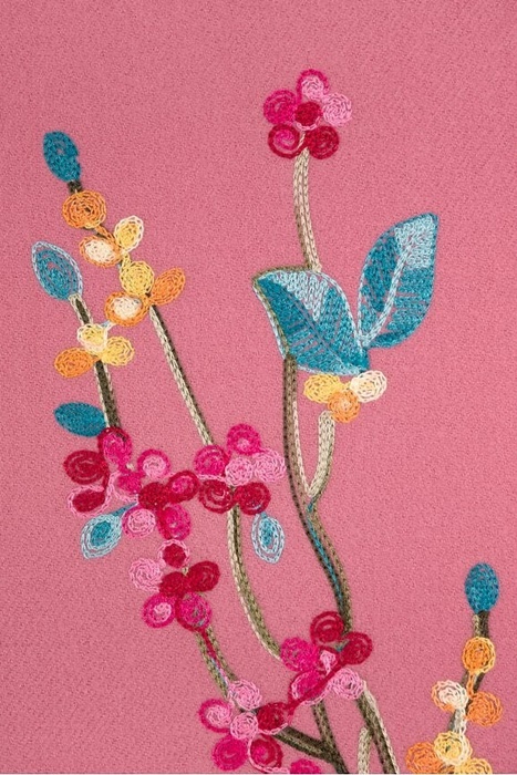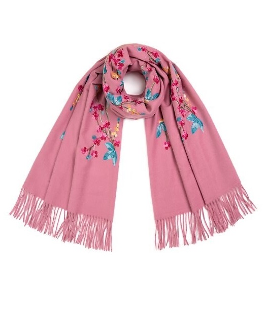 Szal damski Art of Polo w kwiaty z dodatkiem wełny brudny różowy