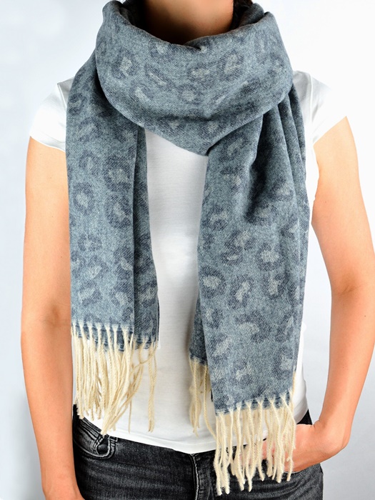 Szal damski we wzorek w panterkę. Szal ciepły idealny do opatulenia w jesienno zimową porę. Elegancki ciepły szal damski.