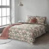Satynowa bawełniana pościel szaro-zielona w różowe kwiaty: