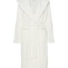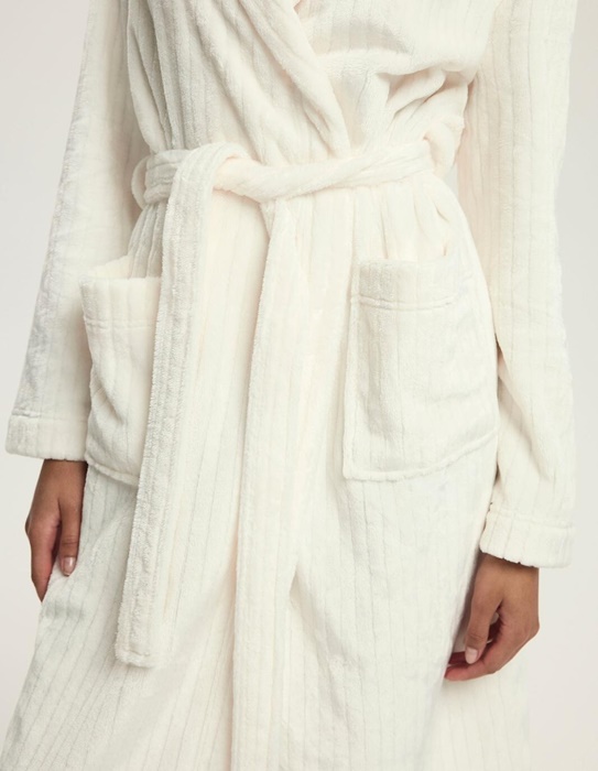 Szlafrok damski Henderson z kapturem za kolana w prążek ecru: