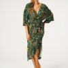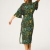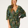 Szlafrok damski KEY cienki lejący ciemna zieleń w kwiaty: