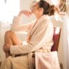 Szlafrok damski długi, bez kaptura. Szlafrok jest długi – za kolana, do łydek, na biodrach ma naszyte kieszenie. Szlafrok Key jest mięciutki, puszysty i ciepły – w sam raz na chłodniejsze wieczory, noce i poranki. Szlafrok długi beżowy z szalowym kołnierzem, wiązany w pasie paskiem.