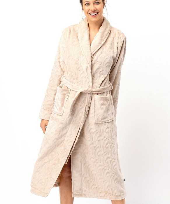 Szlafrok damski KEY LGL 605 B25 Długi miękki beżowy: