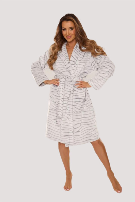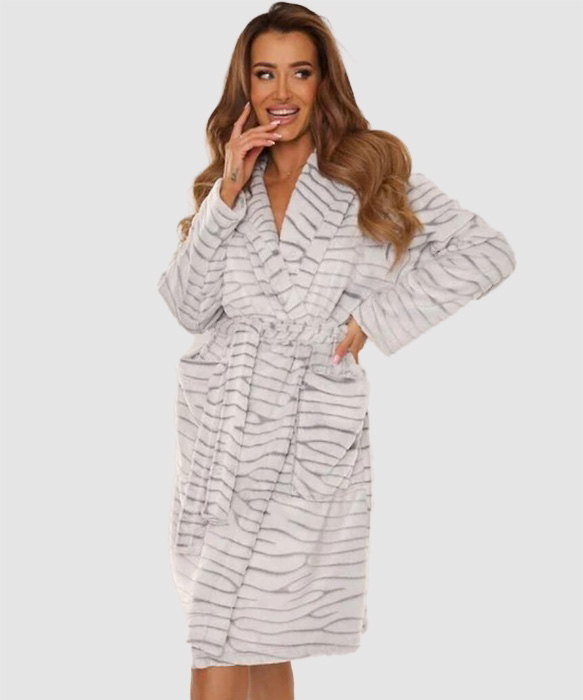 Szlafrok De Lafense 899 Scarlett miękki z kapturem szara zeberka: