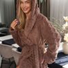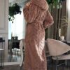 Miękki, długi szlafrok damski we wzorek. Szlafrok długi – za kolana, z kapturem. Szlafrok jest cieplutki i miękki. Po bokach ma kieszenie.