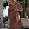 Szlafrok L&L 2402 Geo długi ciepły miękki czekoladowy brąz: