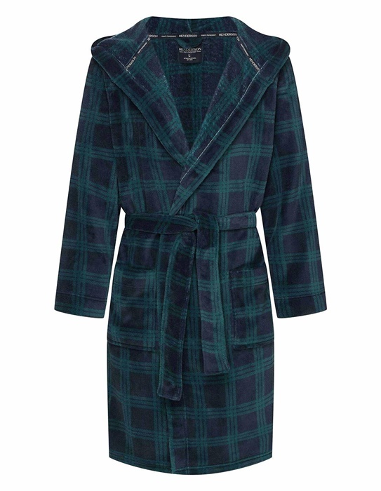 Szlafrok męski Henderson Nickel z kapturem zielony granat krata:
