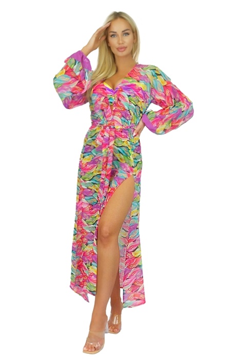 Pareo damskie, lekkie, zwiewne pareo z długimi rękawami, kolorowe. Idealne jako damska tunika plażowa. Świetny dodatek do kostiumu kąpielowego. Długość tuniki za kolana.