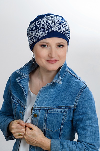 Turban Helena – to model uszyty z delikatnej tkaniny bambusowej z ozdobnymi marszczeniami (przyszyta na stałe szarfa a’la zaplatany warkocz). Turban jest gotowy do nałożenia, nic nie trzeba wiązać i zaplatać;) Tkanina bambusowa jest niezwykle miękka i delikatna, turbany są gładkie i miłe w dotyku.