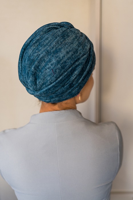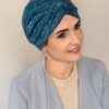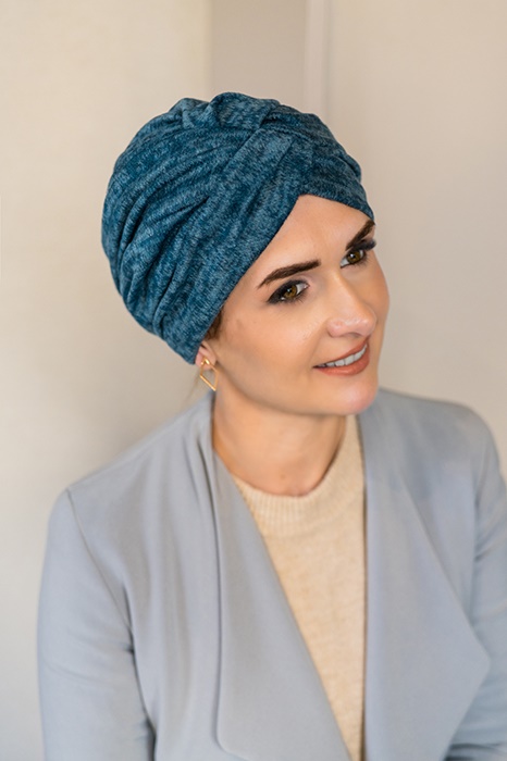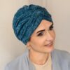 Ciepły wełniany turban Roksana koloru niebieski melanż.