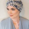 Ciepły wełniany turban Roksana koloru niebiesko beżowego.