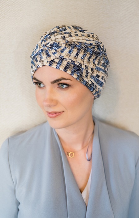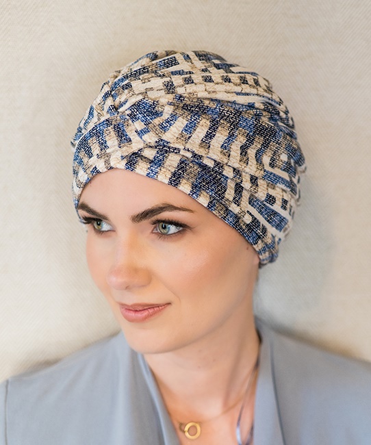 Wełniany turban Roksana niebiesko beżowy