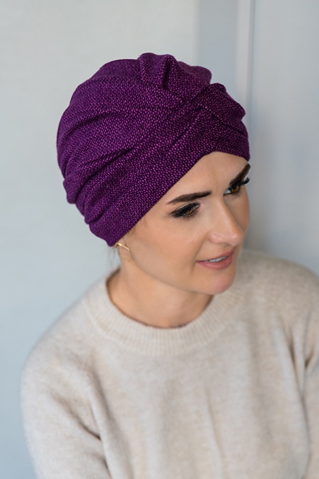 Ciepły turban Roksana to model jesienno-zimowy, składający się z miękkiej i miłej dla skóry bambusowej podszewki oraz ciepłej żakardowej warstwy zewnętrznej. Dzięki ozdobnym plisowaniom i zakładkom czapka Roksana pięknie się na głowie prezentuje. Wewnętrzna podszewka z tkaniny bambusowej jest niezwykle miękka i delikatna. Idealne nakrycie głowy na chłodne wieczory, świetna czapka na jesień czy zimę.
